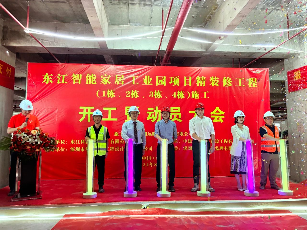 隨著深裝聯(lián)黨委、東江集團(tuán)、中建三局三公司、昊源監(jiān)理、遠(yuǎn)鵬集團(tuán)等單位領(lǐng)導(dǎo)共同摁下項(xiàng)目啟動(dòng)鍵,現(xiàn)場禮炮聲響起,標(biāo)志著項(xiàng)目正式進(jìn)入到實(shí)際建設(shè)階段,開啟新的篇章!