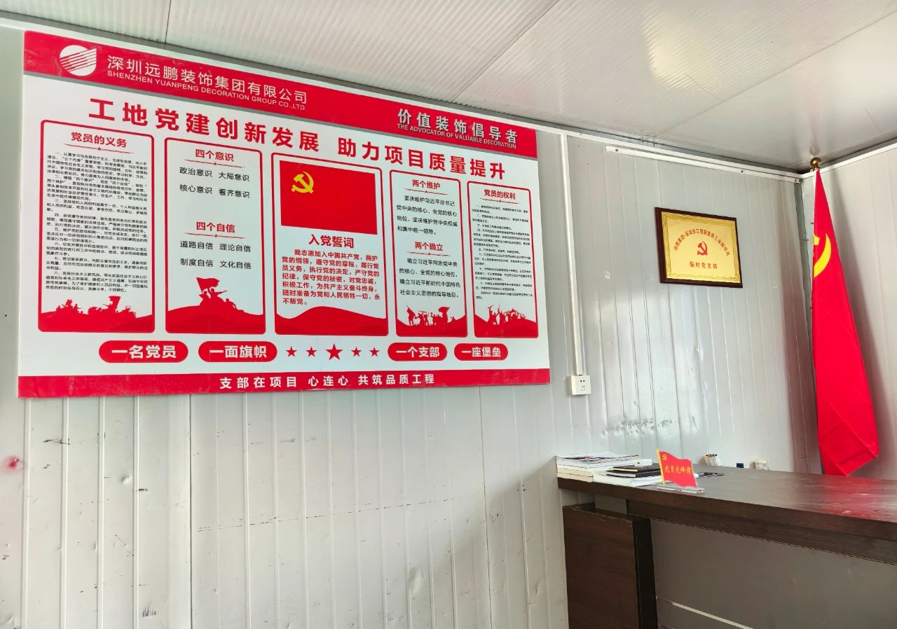 此次,深圳市建筑裝飾產(chǎn)業(yè)聯(lián)合會(huì)黨委在收到遠(yuǎn)鵬集團(tuán)黨支部提交的成立項(xiàng)目臨時(shí)黨支部的申請(qǐng)后,高度重視,綜合考慮東江項(xiàng)目的規(guī)模和影響力,經(jīng)過審慎研究,第一時(shí)間批復(fù)同意。作為深圳市建筑裝飾產(chǎn)業(yè)聯(lián)合會(huì)黨委批復(fù)的首個(gè)項(xiàng)目臨時(shí)黨支部,這是遠(yuǎn)鵬的榮譽(yù),也是東江項(xiàng)目得到行業(yè)關(guān)注的體現(xiàn)。